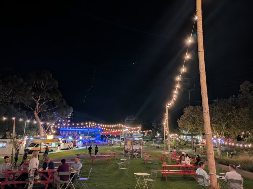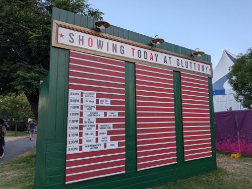 会場となった「Gluttony(グラトニー)」は、アデレード市の東側、緑豊かな公園(Rymill Park)の中に沢山の演目会場となるテントがあり、屋台やバーが並ぶ、この時期のアデレード・フリンジ・フェスティバルでは 象徴的な場所です。