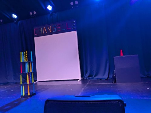 入口のショーの演目が貼られる大きな看板にて午後8時15分「Challenge」をチェック!