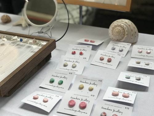 腹ごしらえをしたら、もう一周しながら気になっていたアクセサリーやおやつをお買い物。アデレード郊外のグルネルグで海からインスピレーションを受けたアクセサリーを製作している女性のお店で購入した貝殻から切り出したような質感のピンクのピアスはすごく気に入っています。製作者本人に直接話が聞けて、気に入ったことを伝えることができるのもこういったローカル・マーケットならでは。