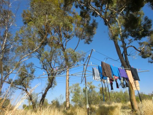 ちなみに、景観を気にする必要がないファームエリアで働いていた時に利用していた物干し竿。風でくるくる回るようになっており、効率的に洗濯物を乾かすことができます。乾燥している準砂漠地帯だったので2時間もあれば洗濯物は十分に乾いていました!