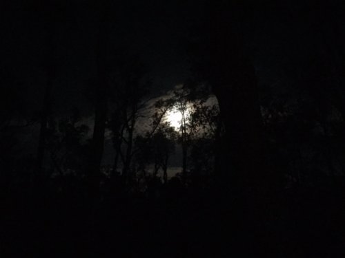 林の間から見る月の幻想的なこと。