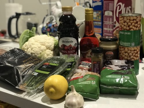 どうやら中東系フュージョン料理のようで、材料も普段は素通りする中東系の材料周辺にありそう。スパイスも結構使うのね…Zestって何ー?Dillって何ー?Tahiniって何ー?Currantsって…?