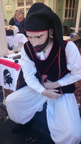 このお祭りはFerragosto(フェラゴスト)といい、聖母マリアが現世での生を終え天に召されたことを記念する日だそうで、イタリアではクリスマス、イースターに並ぶ大きな祝日だそうです。ストリートにはイタリアンカラーが飾られてます。