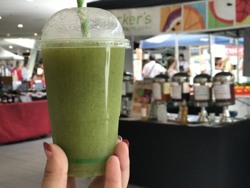 喉が渇いていたので、ジュースバーでパイナップルとミントの生ジュースを買って飲んでみました。通常、ジューサーで作った生ジュースは果汁だけなのですが、この生ジュースは果肉と繊維までしっかり入っています。果物から採れる栄養素も大事ですが、健康には食物繊維も欠かせませんものね。
