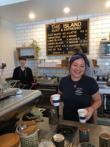自然の中で動いた後は、カフェで空腹を満たします。サーフィン帰りの人も立ち寄れるオープンなところばかり。
