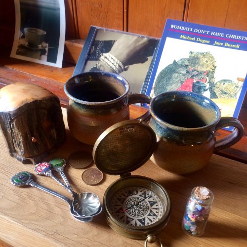 方位磁針の中には ”Waltzing Matilda”のタイトルと一緒に文章?詩?が書いてある…調べてみるとこれは歌詞で、「ウォルツィング・マチルダ」はオーストラリア国家とならぶ程有名なオーストラリアの曲でした。