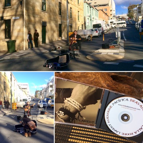 マーケットではバスキング(路上音楽)をしている場所がありました。ギターにデジュリドゥ(アボリジニの民族楽器/世界最古の管楽器!?)、ウィンドチャイムを足元に…とにかく身体全部を器用に使って一人で音楽全開で演奏している学生に出逢いました。