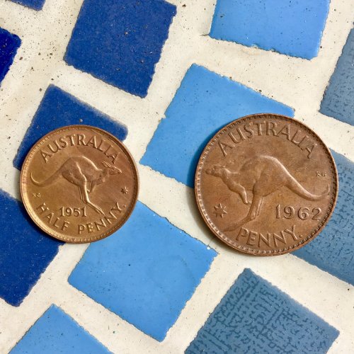今回ゲットしたのは今はなき、1964年まで作られていたAustralian PennyとHalf Penny。