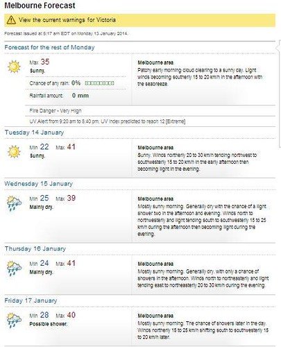 メルボルンは3月くらいまでこのような天気が続くと思います。 これから入国される方は、温度差の激しいメルボルンに備えて、日焼け止め、帽子、そして涼しい日や冷房対策用のカーディガン等の羽織るものもお忘れなく!!
