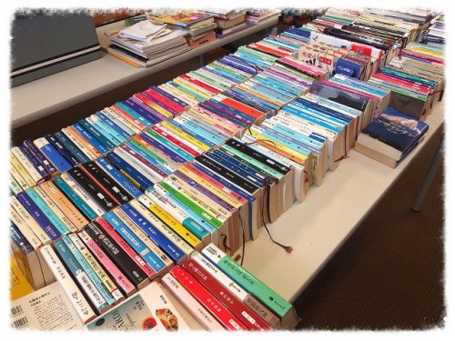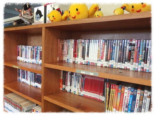 日本の本はもちろん、DVDもたくさん。