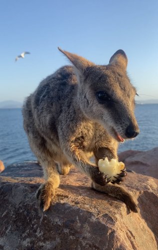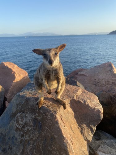 コアラだけではない!マグネティックアイランドに来て一番驚いたのは、ワラビーの多さ!マグネティックアイランドにいるワラビーは”ロックワラビー”という種類で、名前の通り岩の上をピョンピョン跳ね回るのが得意です。岩陰からひょっこり現れます。