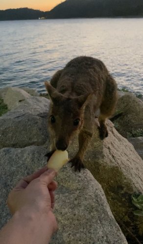 りんごがなくなったあと、それでも近寄ってくるワラビーたちに「ごめんね、ごめんね」と謝りつつ3日間毎日りんごを持って遊びに行きました。笑