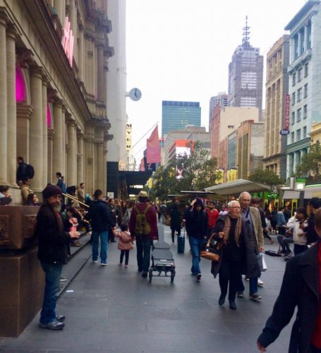 日本では路上は路上かもしれませんが、メルボルンでは路上がひとつのエンターテイメントのようでもあり社交場のようでもあります。