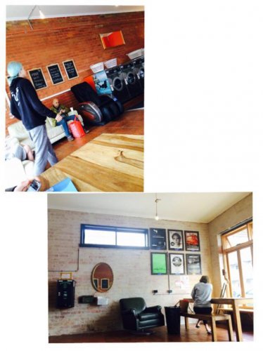 コインランドリーなのでもちろん洗濯機、乾燥機がずらっと並んでいるのですが、レンガ調の落ち着くインテリアの中、どっぷりとくつろいでいる人がいつもいるんです。笑