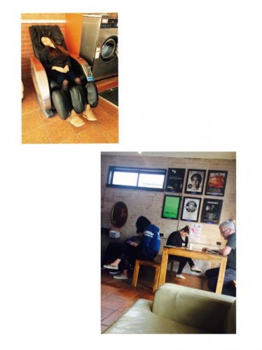 乾燥機がぐるぐる回っている間($4, 32分間)に、美味しいコーヒーに、マッサージ、情報収集までできてしまいました。