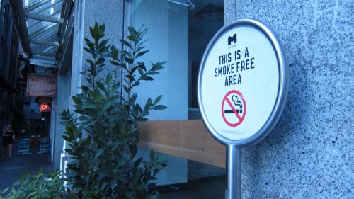 オーストラリアの街を歩いているとこのような看板が多く見られますが、「Smoke Free area」とは煙草が吸えないエリアという意味になります。