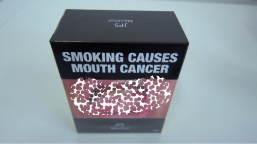 パッケージも様々あるのですが、これにはSmoke causes Mouth cancerと書いてあり、喫煙は口腔癌の原因になりますと写真説明付きで書いています。ちなみに、政府が作っているCMでは、動画で喫煙の危険性を説明していて、パッケージ同様かなり印象的なCMとなっています。