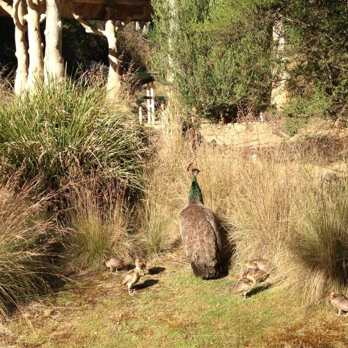 散歩道の途中にはお食事中のワラビーやクジャクの親子もいました。毎日散歩やランニングをしていたら小さい子供のクジャクの成長も見られるんだろうな…