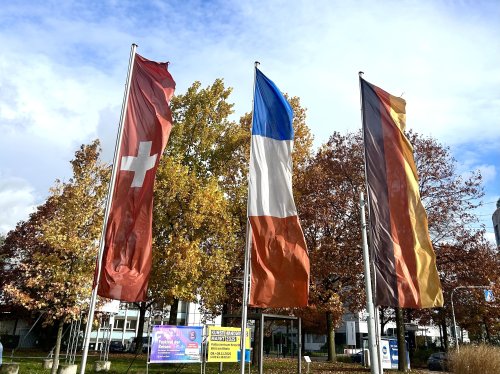 バーゼル市を流れるライン川では、スイス・ドイツ・フランス、3つの国境が交わっています。徒歩で三カ国の国境を越えられるのもバーゼル市観光のポイント!"こけし"と現代アートで繋がる
