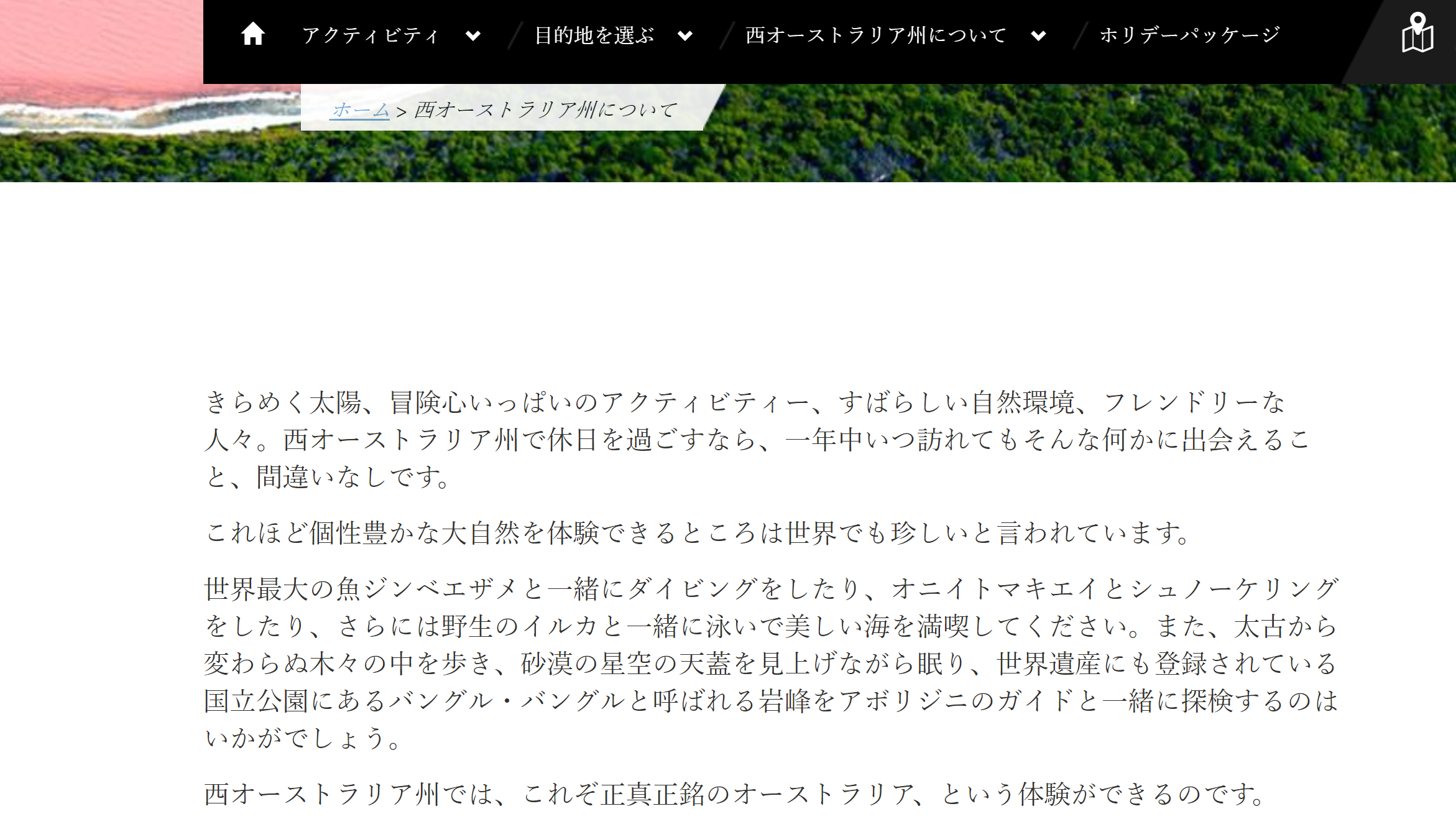 せっかくパースにいるなら、ぜひ広大な西オーストラリア州を旅して頂きたいのですが、現地の旅行ガイドや観光ウェブサイトって、英語なのは仕方ないにしても、イマイチお勧めスポットや実際どこにあるか場所がわかりづらい。。。